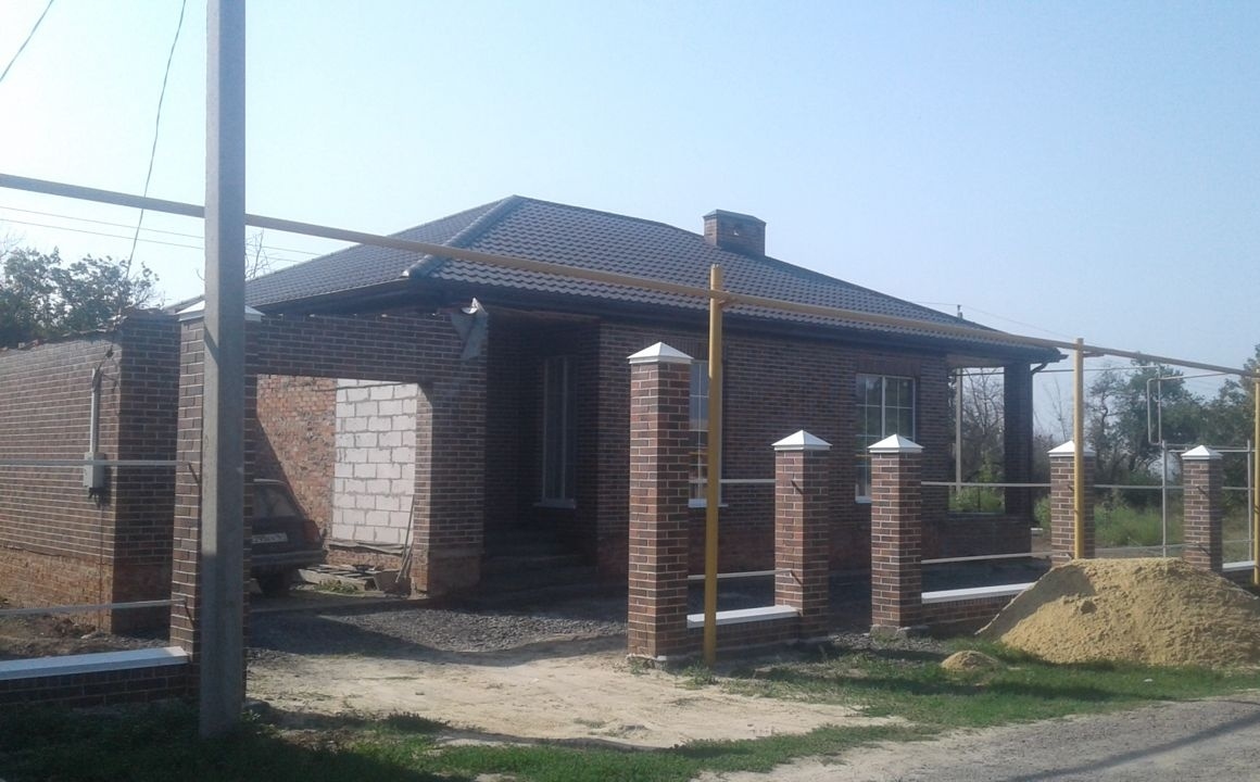 Продаю! Новый, кирпичный дом около детского садика и остановки , 1-этажный дом с гаражом (баварская кладка). Площадь дома 11*14м, гараж 7*4м. Крыша- металлочерепица премиум класса, витражные окна rechau с англ. раскладкой. В доме: 3 отдельных спальни, большая гостинная с кухней, в/т и бойлерная, 2 входа в дом. Дом делал для себя, на материалах не экономил. Каменщики и кровельщики- профессионалы!! Все коммуникации подведены и работают.Торг при осмотре.