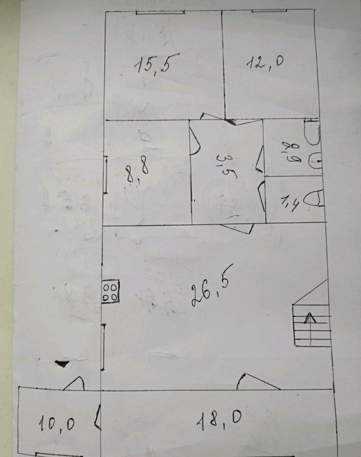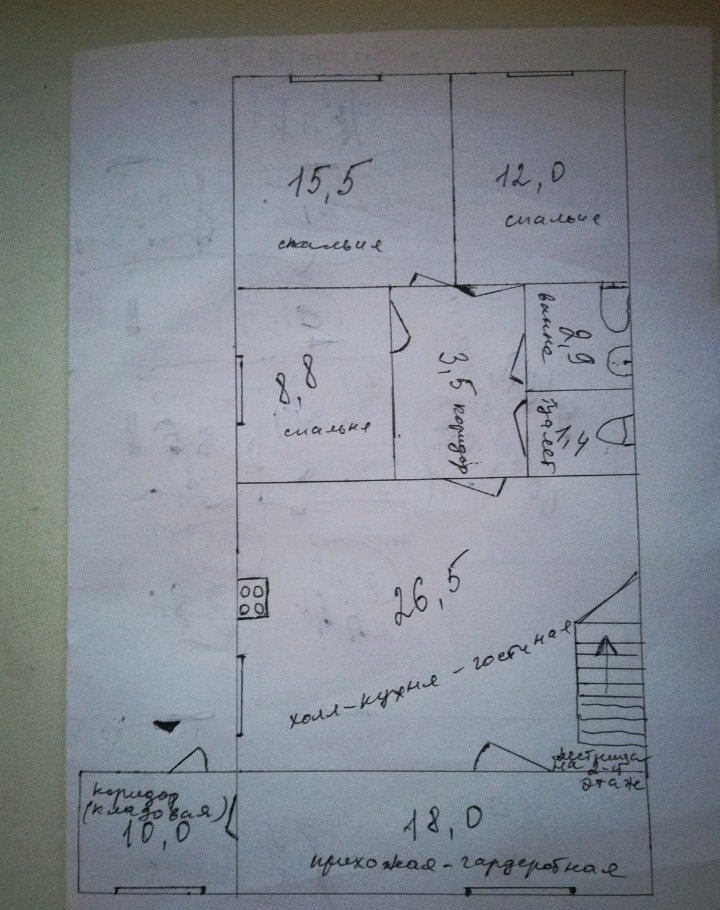 На 1-м этаже — 98,6 м², а именно : 3 жилые комнаты — 15,5 м², 12,0 м² и 8,8 м², ванна, туалет отдельно, коридор , есть прихожая-гардеробная, 10м², кухня 15², кухня-холл 25.5м²,лестница на 2-й этаж и мансандра - —70,6 м. Есть частичные недоделки. Торг уместен. Есть сад с фруктовыми деревьями, виноград, кусты смородины, цветы. долевая только нал