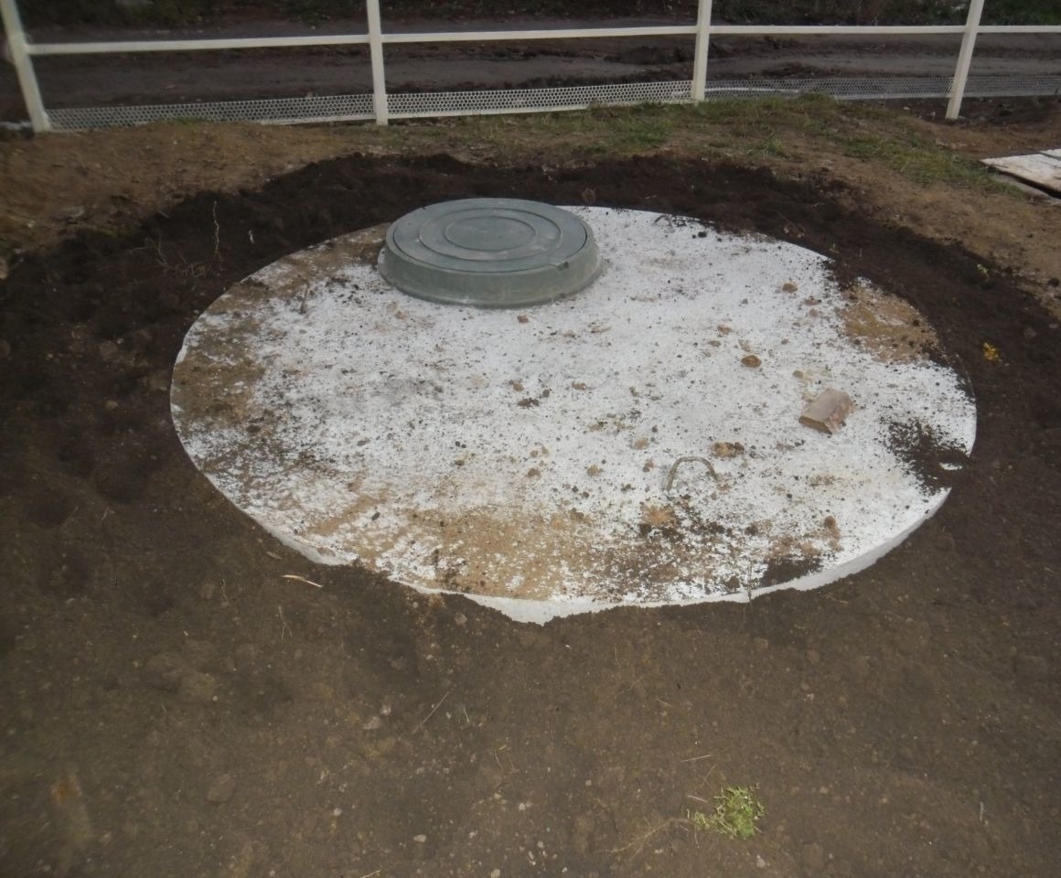 Организована сливная яма 12 м3 из бетонных колец.
