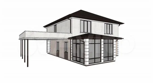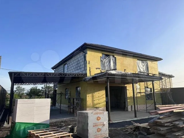 Забор по кругу, дорогие окна с хорошей шумоизоляцией Rehao, терраса, навес под 2 машины. Заказаны ворота для гаража. Так же будет утепление, штукатурка и покраска фасада по проекту. Разводка света по дому.